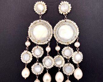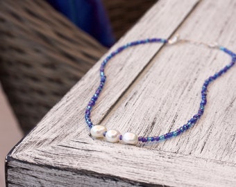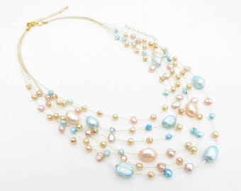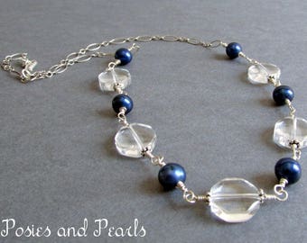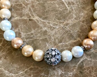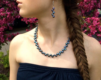 Cream Swarovski and Iridescent Blue Freshwater Pearls - Mother of The Bride, Bride, Bridesmaid, For Her, Gift For Her, Birthday
