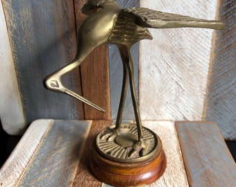Vintage Brass Figurine Crane Bird Set Pair Retro Metal Figurines