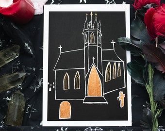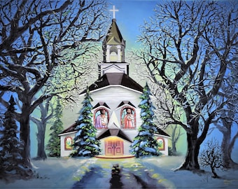 Vintage Religious Color Lithograph Print - His Church - Jesus Illustration