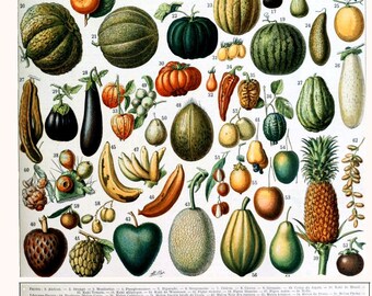 Vintage Religious Color Lithograph Print - By Their Fruits - Bible Quote Illustration