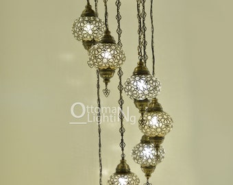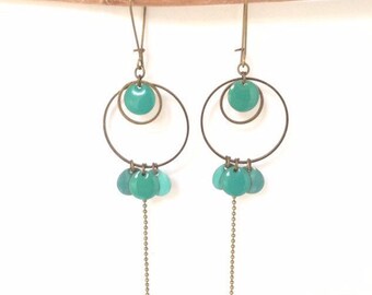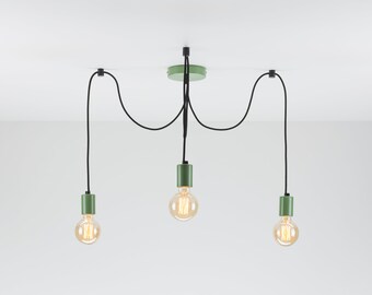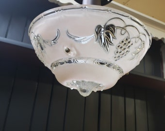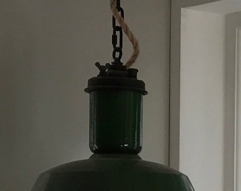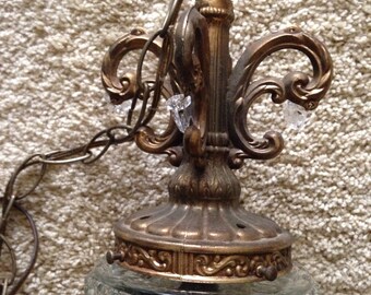 Vintage Swag Lamp Green Glass Metal Hanging Chain Light Mid Century Retro