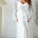 bridal gown, lace wedding robe, maternity dress, long bridal robe, getting ready, wedding day, boudoir robe, boho boudoir simple dress