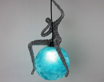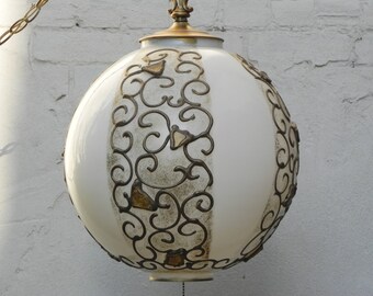 Vintage Swag Lamp Orange Black Spaghetti Plastic Globe Hanging Light C.N. Burman