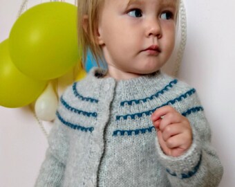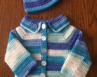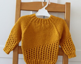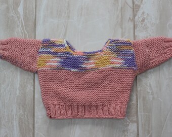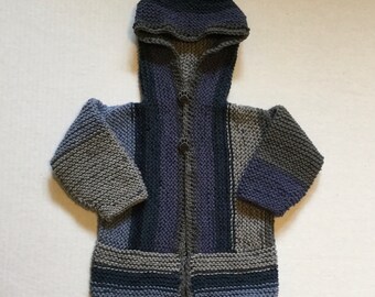 Hand Knitted boy sweater. Sizes 0-3, 18 and 24 months. Brown.