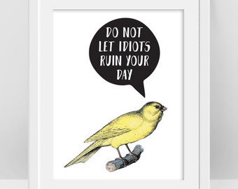 Vintage Motivational Poster - Aesop Quote - 1970s Bird Illustration by Gene Tarpey