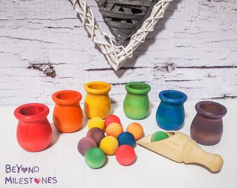 Wooden Rainbow Sorting Bowls-Montessori inspired