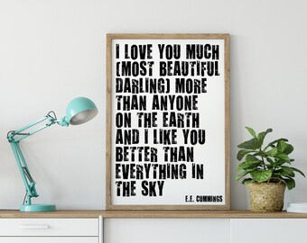 Vintage Motivational Poster - ee cummings Love Quote - Illustration by Patricia Ellen Ricci