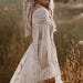 Modest Long Sleeve V-back Boho Wedding Dress with Detachable Train