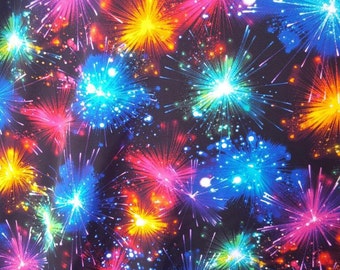 Fireworks Print on Black Spandex Lycra Fabric Sold by the Yard {Colorful Fireworks}