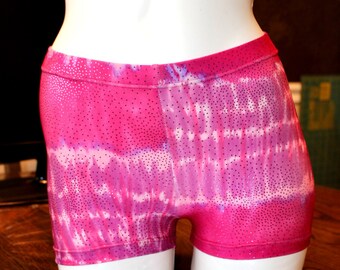 Hot pant spanky spandex lycra shorts DANCERS FAVORITE XS adult Lg child shades of pink hologram print with sparkles