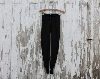 1990s cycling pants, stirrups, black spandex lycra, small, elastic waistband, shiny, T.J. Spokes, made in USA, very stretchy