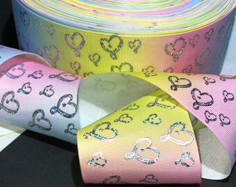 Pastel Ombré Hologram Heart Love Designer Grosgrain Tik Tock Cheer Ribbon