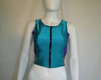 SALE Closing Shop SALE 80s 90s Vintage spandex lycra shiny top zipper workout shirt CHEROKEE