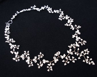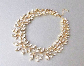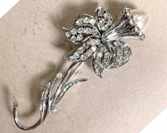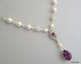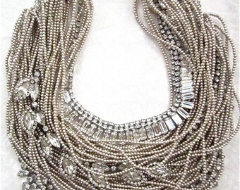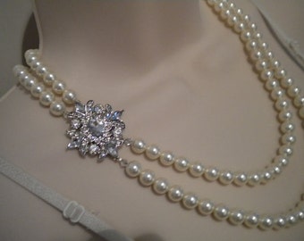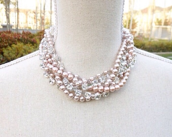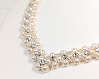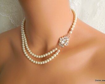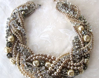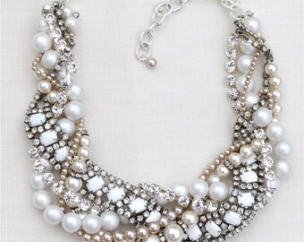 Rhinestone Pearl Necklace Bridal Bib Statement Necklace Vintage Wedding Chunky Asymmetrical Bib - Diamonds Are A Pearl's Best Friend