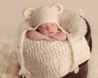 Crochet Baby Hat, Baby Boy, Baby Girl, Photo Prop, Earflap Hat with Ears, You choose color and size, Ready to Ship