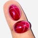 The Oval Cabachon cut Burmese Ruby weighs .50 carats.