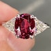 Handmade Oval Cut Ruby & Diamond 14K 18K Gold Ring: Birthstone Jewellery, Three Stone Ring