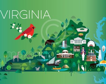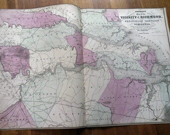 Vintage 9 Piece Virginia Map - 1970s Reproduction of 1859 Extra Large Wall Map