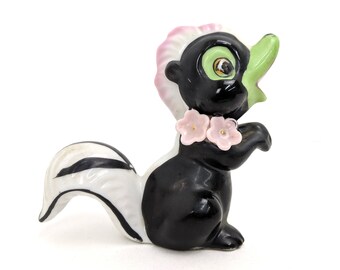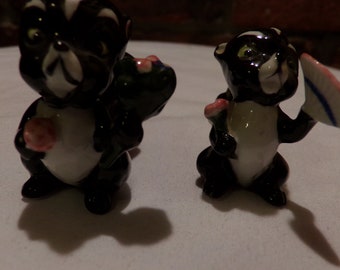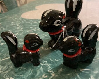 Vintage Miniature Skunk Family Ceramic Figurine Set Retro