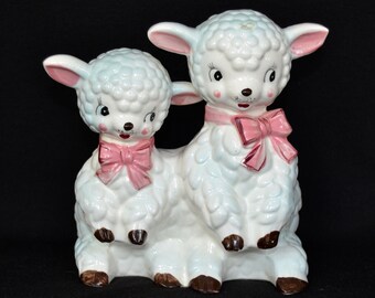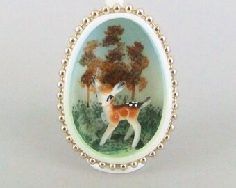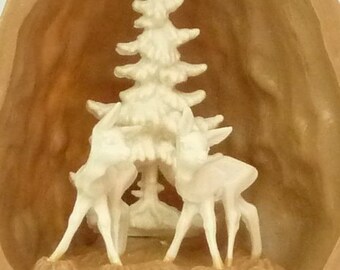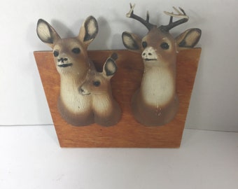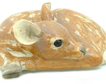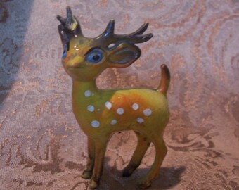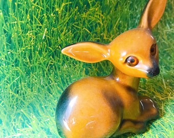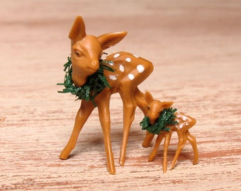 Vintage Miniature Deer Fawn Ceramic Figurine Set Retro