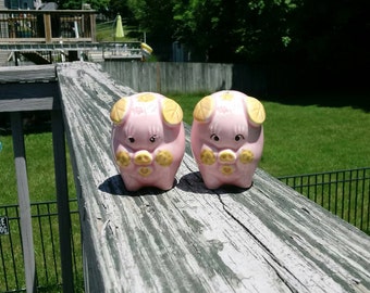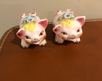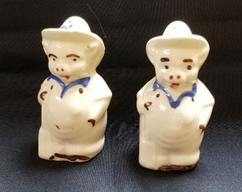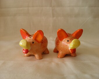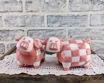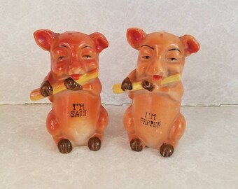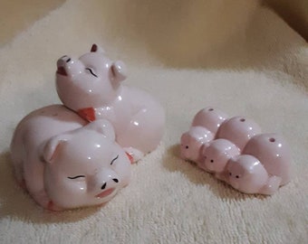 Vintage Kissing Pig Salt Pepper Shaker Ceramic Set Made In Japan