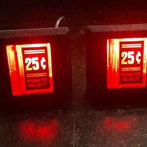 The Buttons are made from Wells Gardener/Coin Controls coin door parts.