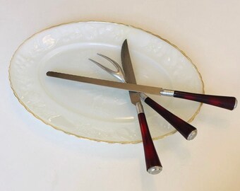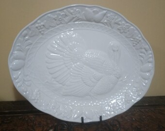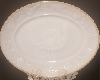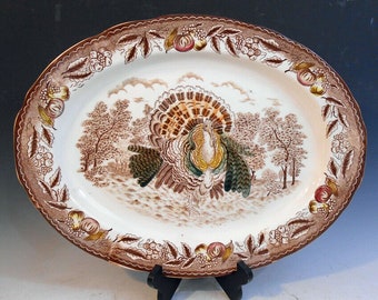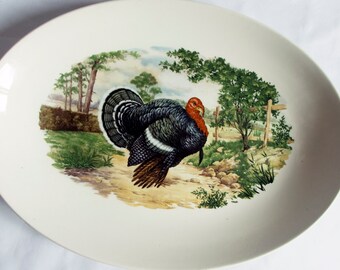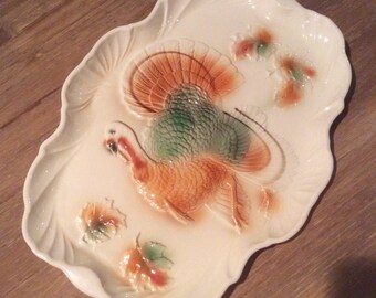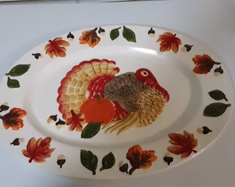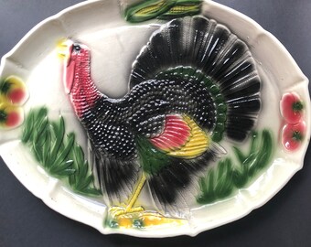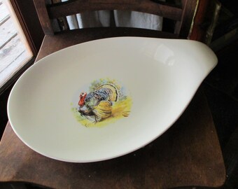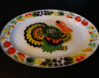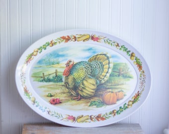 Vintage Turkey Platter Enamel Metal Retro Large Thanksgiving Serving Tray