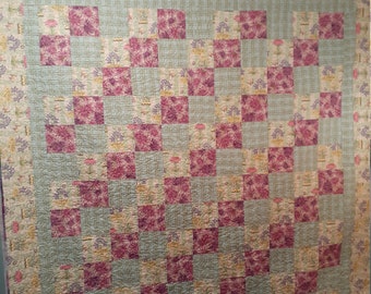Vintage Pink Quilt Bedspread Blanket Full Size Handmade Retro Stripes