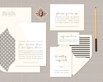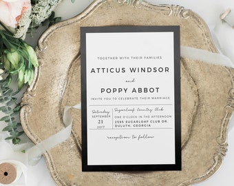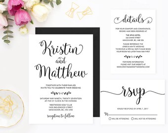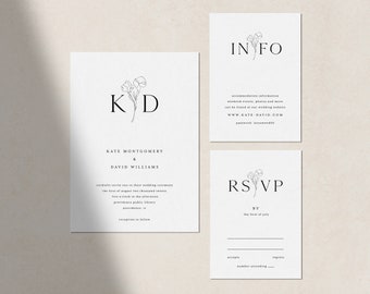 Wedding Invitation Set Printable, Printable Wedding Invitation, Invitation Set for Wedding, Clean Wedding Invitation, Black and White Invite