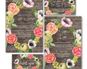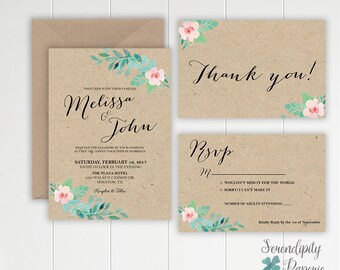 Rustic Wedding Invitation Set printable. craft wedding invitation. rustic wedding stationery