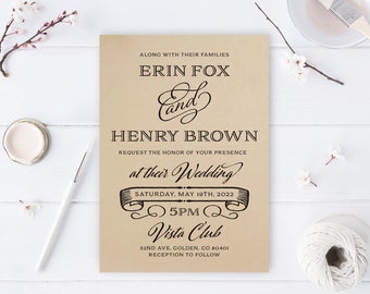 Vintage Wedding Invitation Set, Printable Wedding Invitation Template, Rustic Wedding Invitation Card, Kraft, DIY Wedding, VW01