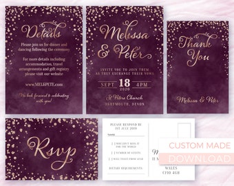 Printable Wedding Invitation, Burgundy Wedding Invitation, Wedding Invitation Set, Printable, Personalized, Wedding Invitations, Invitation