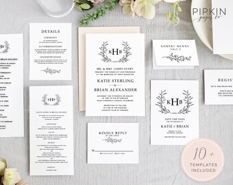 Printable Wedding Invitation Set | Printable Wedding Stationery | Digital Download for Word | Floral Wreath Invitation | Katie