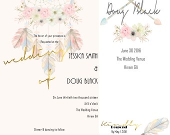 Winter Bohemian Wedding Invitation Set; Printable OR Set of 25