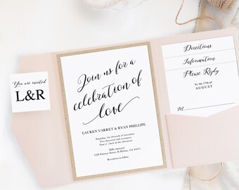 Pocket Wedding Invitation Set, Printable Wedding Invitation Template, DIY Wedding Cards, Instant Download, Calligraphy, #SPP007wip