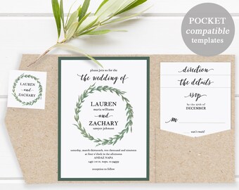 Pocket Wedding Invitation Set, Printable Wedding Invitation Template DIY Wedding Invite Download Watercolor Boatnical Wreath #SPP032wip