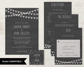 Pocket Wedding Invitation Set, Printable Wedding Invitation Template, DIY Wedding Invite, Instant Download, Edison, Chalkboard #SPP006wip