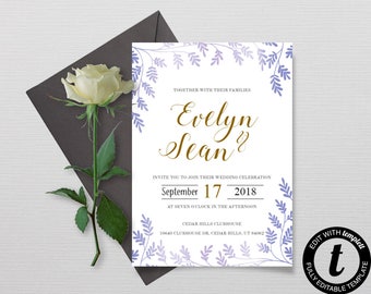 Floral Wedding Invitation Set, Printable Lavender Wedding Suite, Nature Wedding