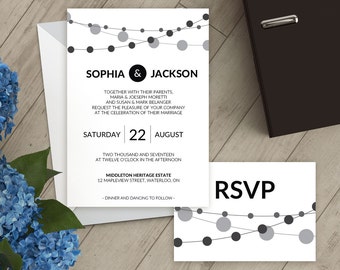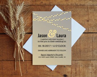 Wedding Invitation, Lights Wedding Invitation Set, Printable Wedding