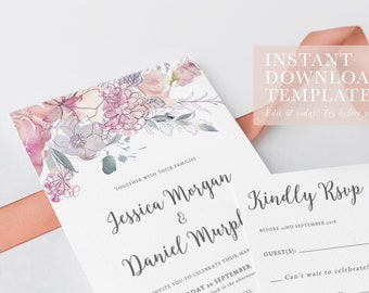 Floral wedding invitation template, Wedding invitation printable, Wedding invites set, Wedding invitation set, printable invitations