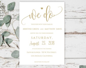 We Do Wedding Invitation, Gold Wedding Invitation Set, Printable Wedding Invitation Set, Wedding Invitation Suite, Gold Wedding, 6023_1G