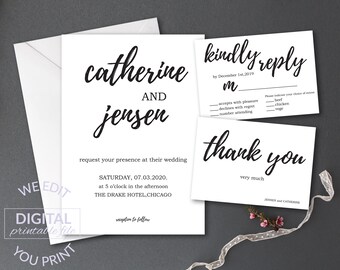 Modern Wedding Invitation, RSVP, Thank You Printable Set, Printable Wedding Invitation Set; Classic Wedding Invitation Printable Set; We Do
