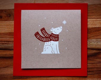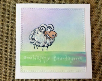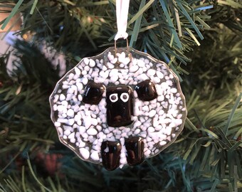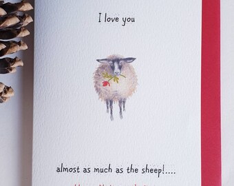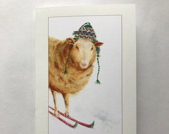 Sheep Holiday and Christmas Card. Sheep wearing a scarf.