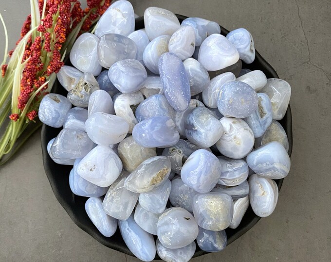 Blue Lace Agate Stone | Blue Lace Agate Crystal | Blue Lace Agate Tumbled Stones | Reiki Healing Crystals | Throat Chakra, Calming