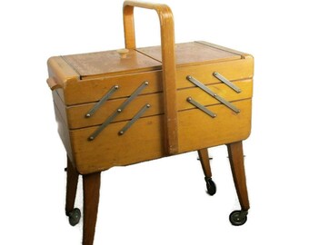 Vintage Lerner Plastic Sewing Box Basket With Notions Tray Organizer