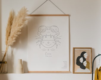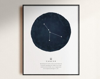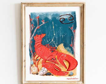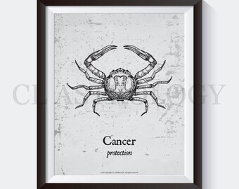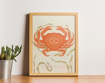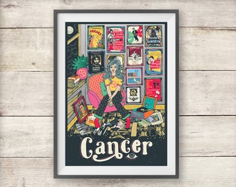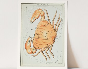Vintage Zodiac Illustrated Print - Cancer Astrology Sun Sign Poster