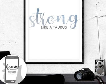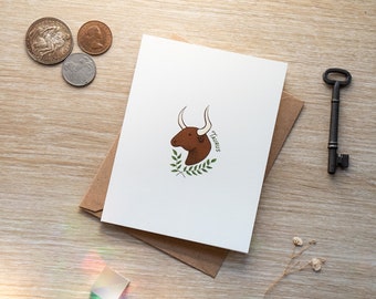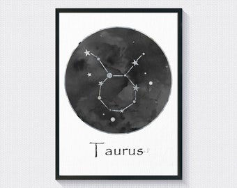Vintage Zodiac Illustrated Print - Taurus Astrology Sun Sign Poster