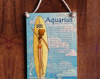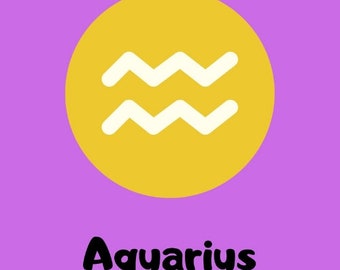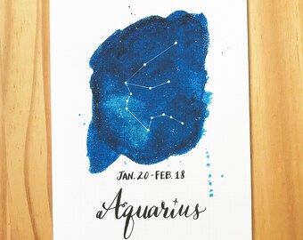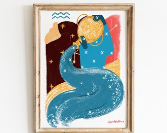 Vintage Zodiac Illustrated Print - Aquarius Astrology Sun Sign Poster