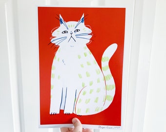 Vintage Cat Illustration Print - Persian Illustrated Color Poster