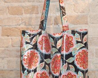 Tween Teen Laminated Cotton Tote Bag - waterproof fabric- reversible - vintage style floral and dot print fabric